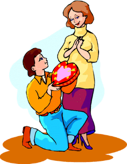 | Scenario 18 The man in the picture is on one knee with flowers in his hand. The woman looks very pleased with what the man is doing. What might he be saying to her? |