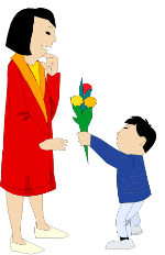 Scenario #3 This child is starting school today and wants to give his teacher some flowers. What might he say to the teacher? |