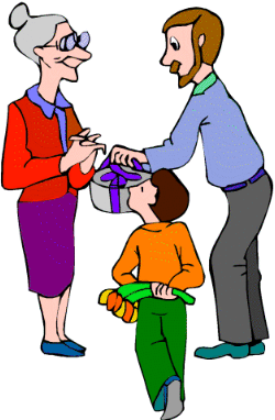 Dad is giving his mother a gift for no reason. His mother might have what kind of reaction to the gift?