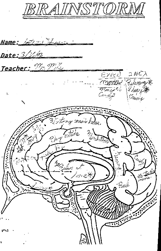 Below is a sample of student work during a “Brainstorm.” The students were asked to suggest fun things that they did with their friends after school. The teacher wrote their ideas on an overhead transparency. The students copied the written words if they had difficulties in spelling what they heard. The words were placed anywhere in the brain. There was not any judgment about the validity of the suggestions. After everyone had contributed an idea, the teacher asked the students to indicate which activities were expensive or inexpensive. Brainstorming can be used in any lesson to identify applications of a social skill. It can also be used as a starter before class. An extension of this activity is to have the students make a prioritization of the items. In this example,the student determined the most expensive leisure activities and the least expensive activities.